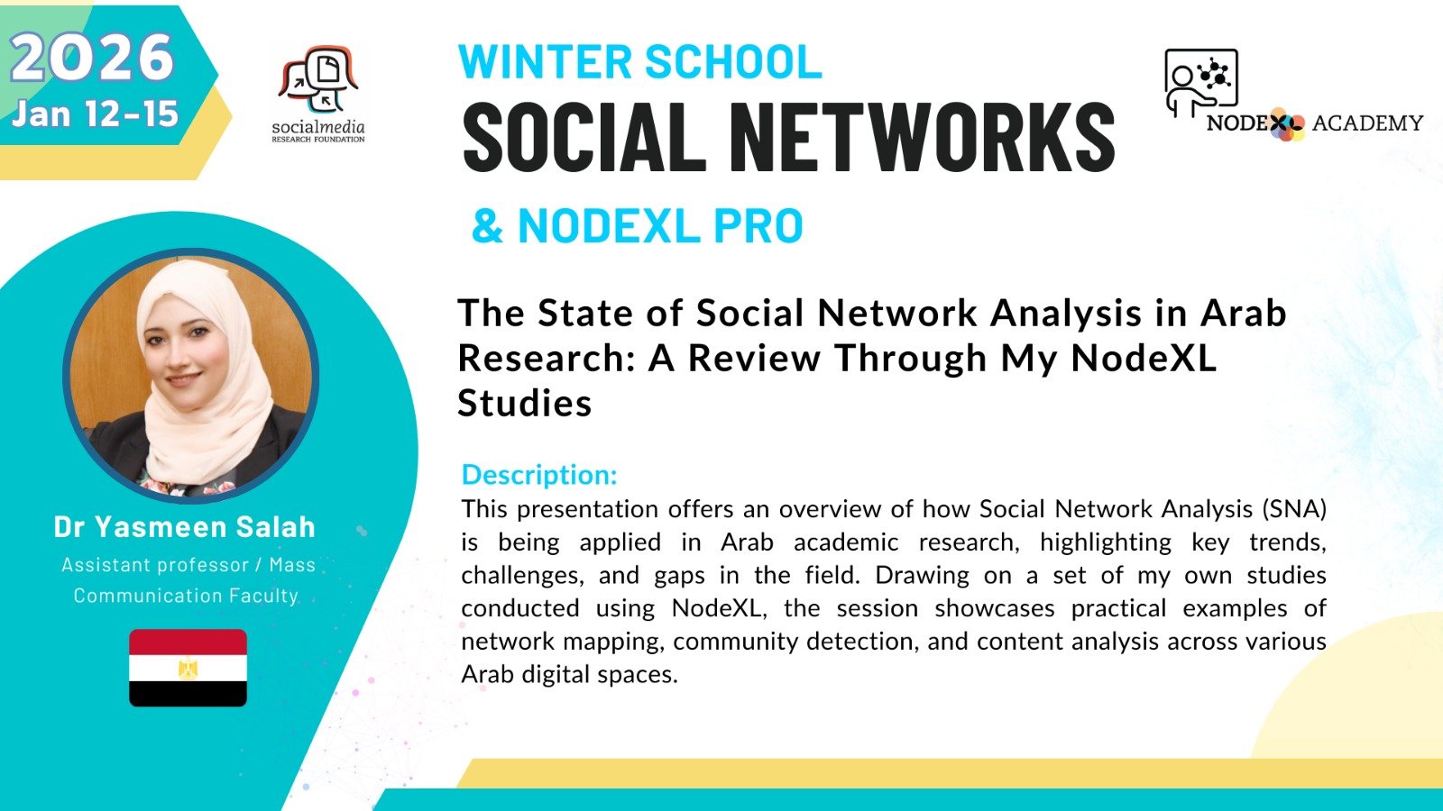 Lecture: “The State of Social Network Analysis in Arab Research: A Review Through My NodeXL Studies”