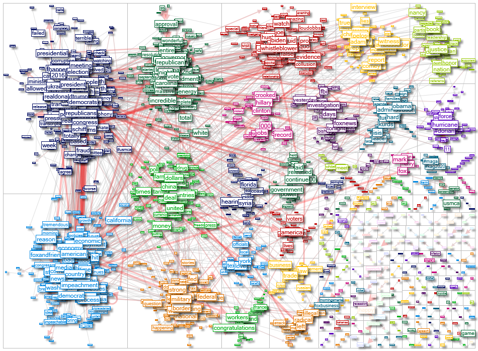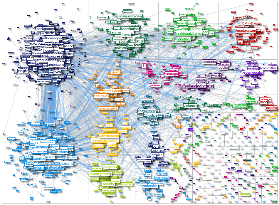 Use the NodeXL Pro Users Network Importer to compare the semantic network of two (or more) Twitter users, e.g. below you can compare the word networks by Donald Trump and Nancy Pelosi based on their past 3,200 tweets each.