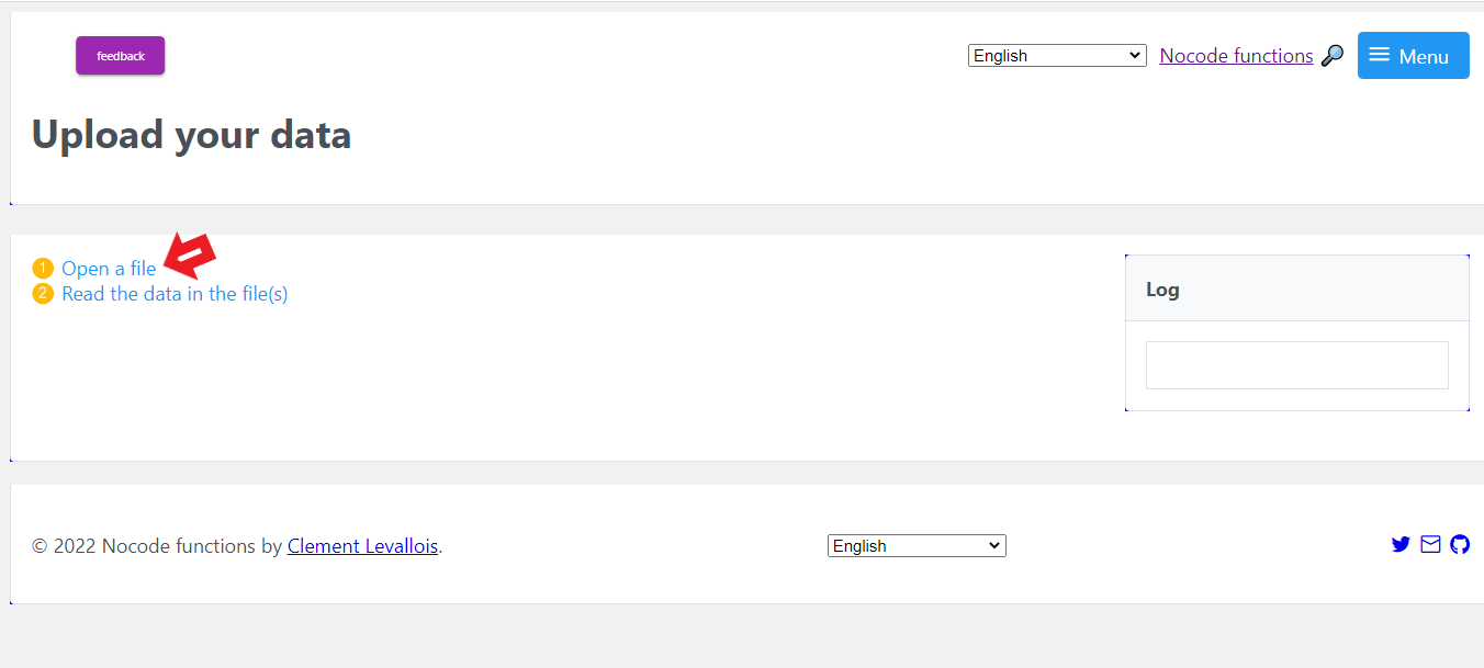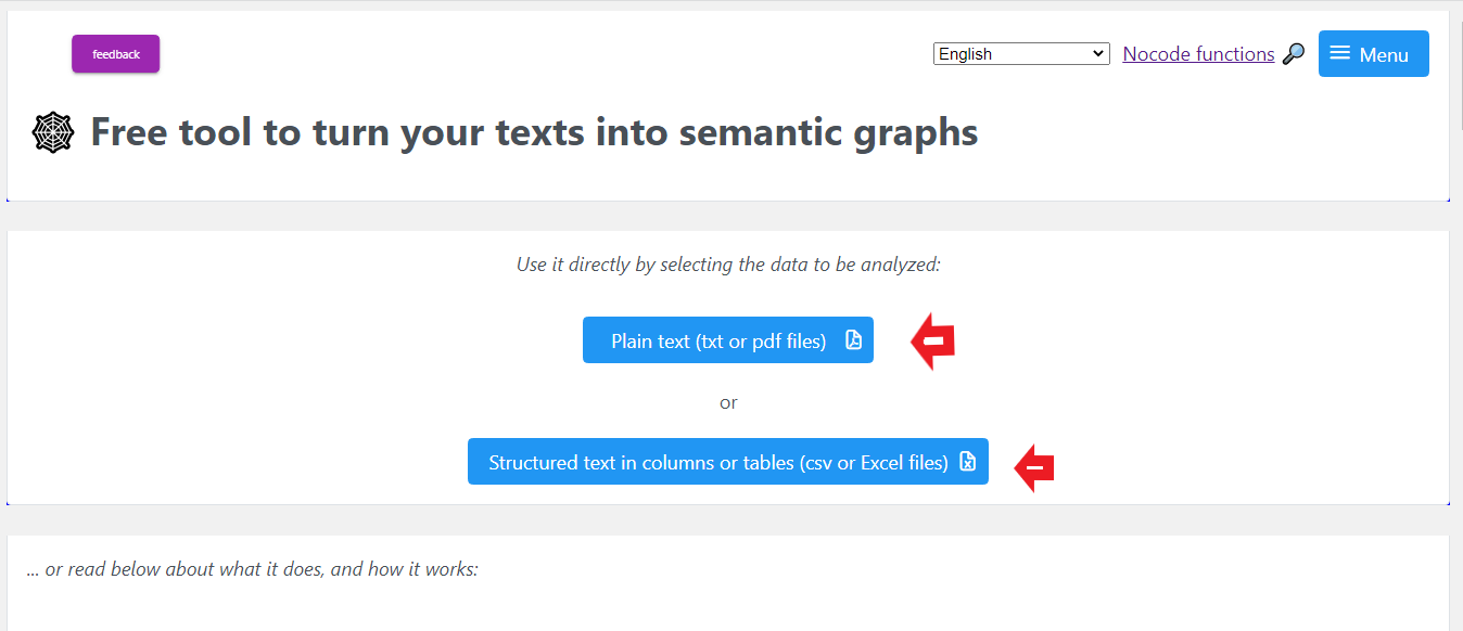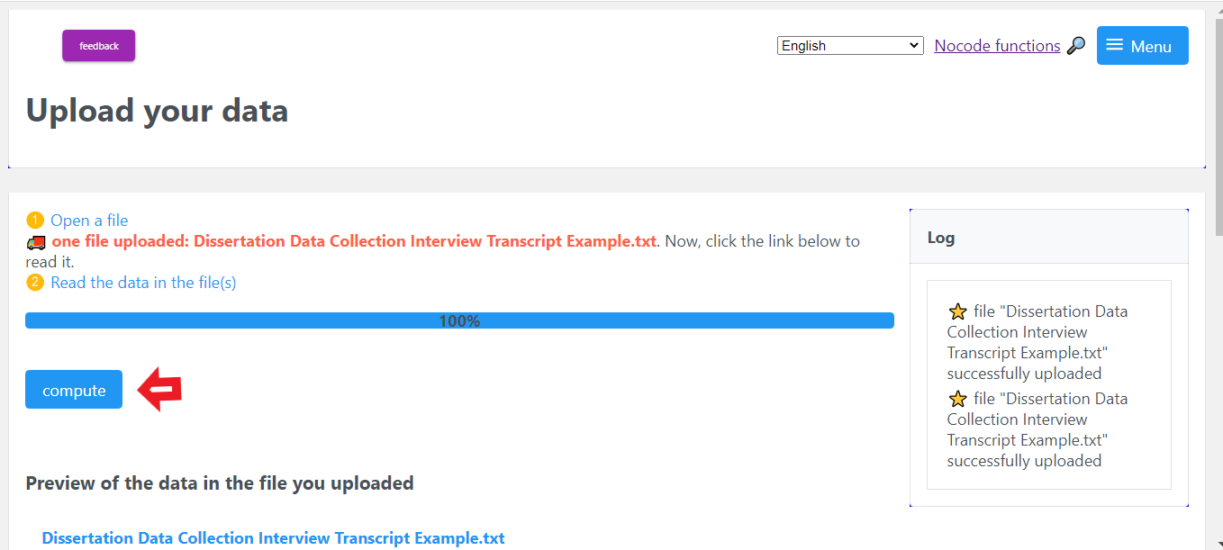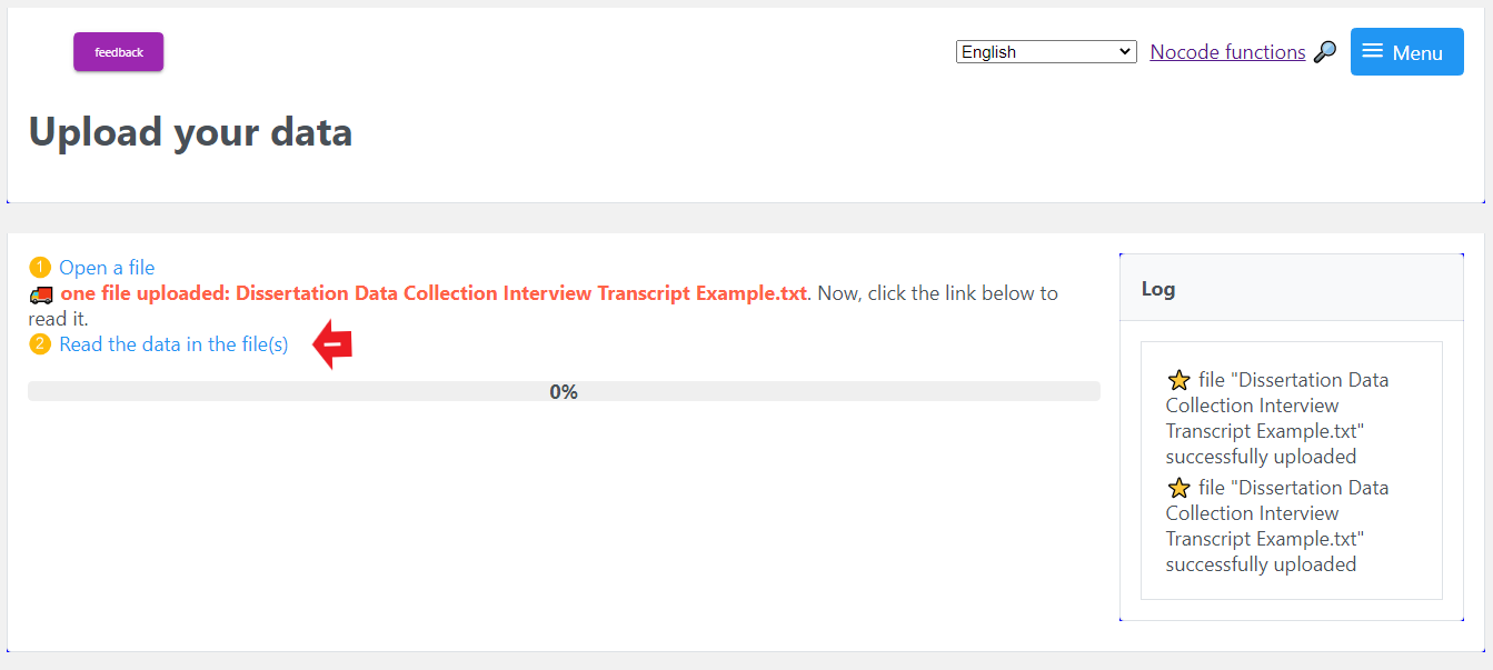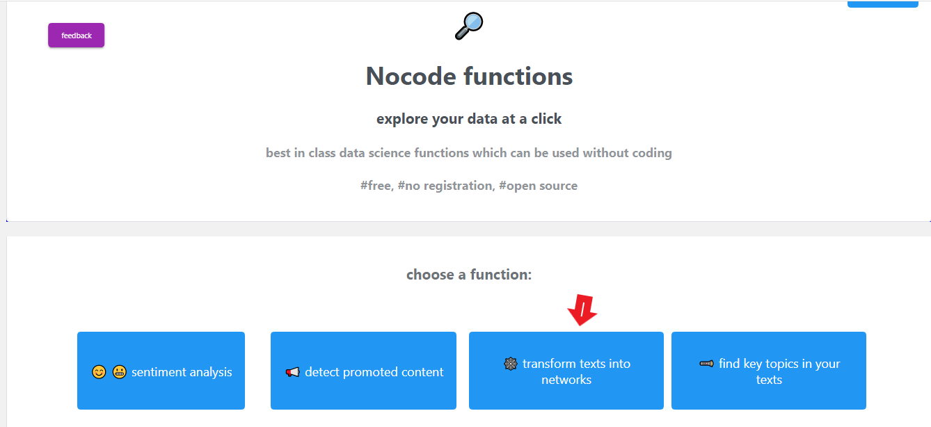 Step 1: Open the page nocodefunctions. As mentioned above, this tool will allow you to convert the interview transcript to a network file and then import it into NodeXL Pro.