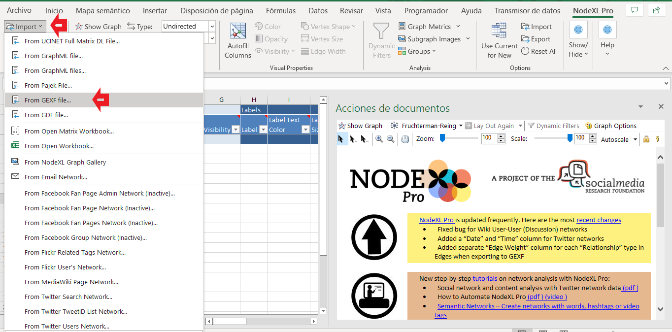 Step 9: Open your NodeXL Pro tool and import the gexf file downloaded in the previous step.