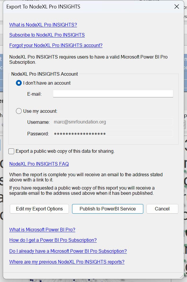 All NodeXL Pro users van now just collect X/Twitter data or BlueSky and publish a interactive dashboard that you can share with anyone over the web. Use the menu option: