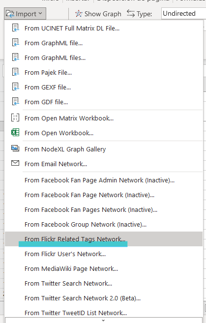 Open the Flickr Related Tags Network Importer via NodeXL Pro > Data > Import > From Flickr Related Tags Network.