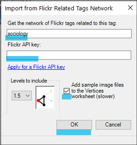 Follow the steps below to generate a Flickr related tag network with NodeXL.
