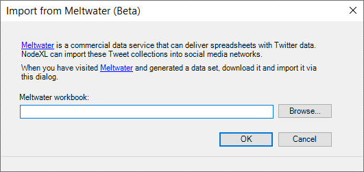 To open the NodeXL Pro Meltwater Data Importer, select Excel > NodeXL > Data > Import > From Meltwater (Beta)…