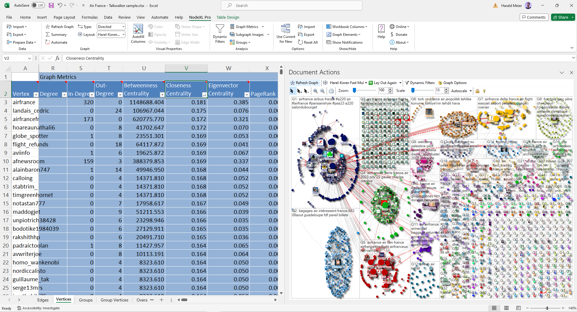 You can also easily turn your network data set into a NodeXL Pro INSIGHTS Report via Excel > NodeXL Pro > Data > Export > to NodeXL Pro INSIGHTS…