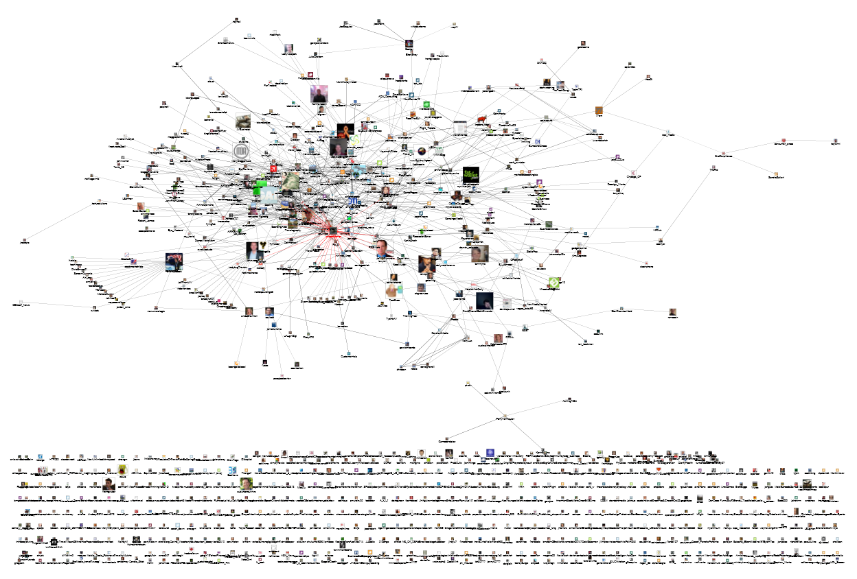 United has a large twitter mentioning population and has a bigger main component. The larger profile photos indicate Twitter authors with many followers. The large population of isolates or small components at the bottom of both images are people who mention either airline but are not in a conversation or a relationship with someone else who also mentioned these brands. They are “shouts” about a brand, not conversations. In contrast the large component in both images are the connected collection of people who talk to people who talk about these brands. They are committed to the topic in a way the less connected authors are not. They know someone who also talks about air travel.