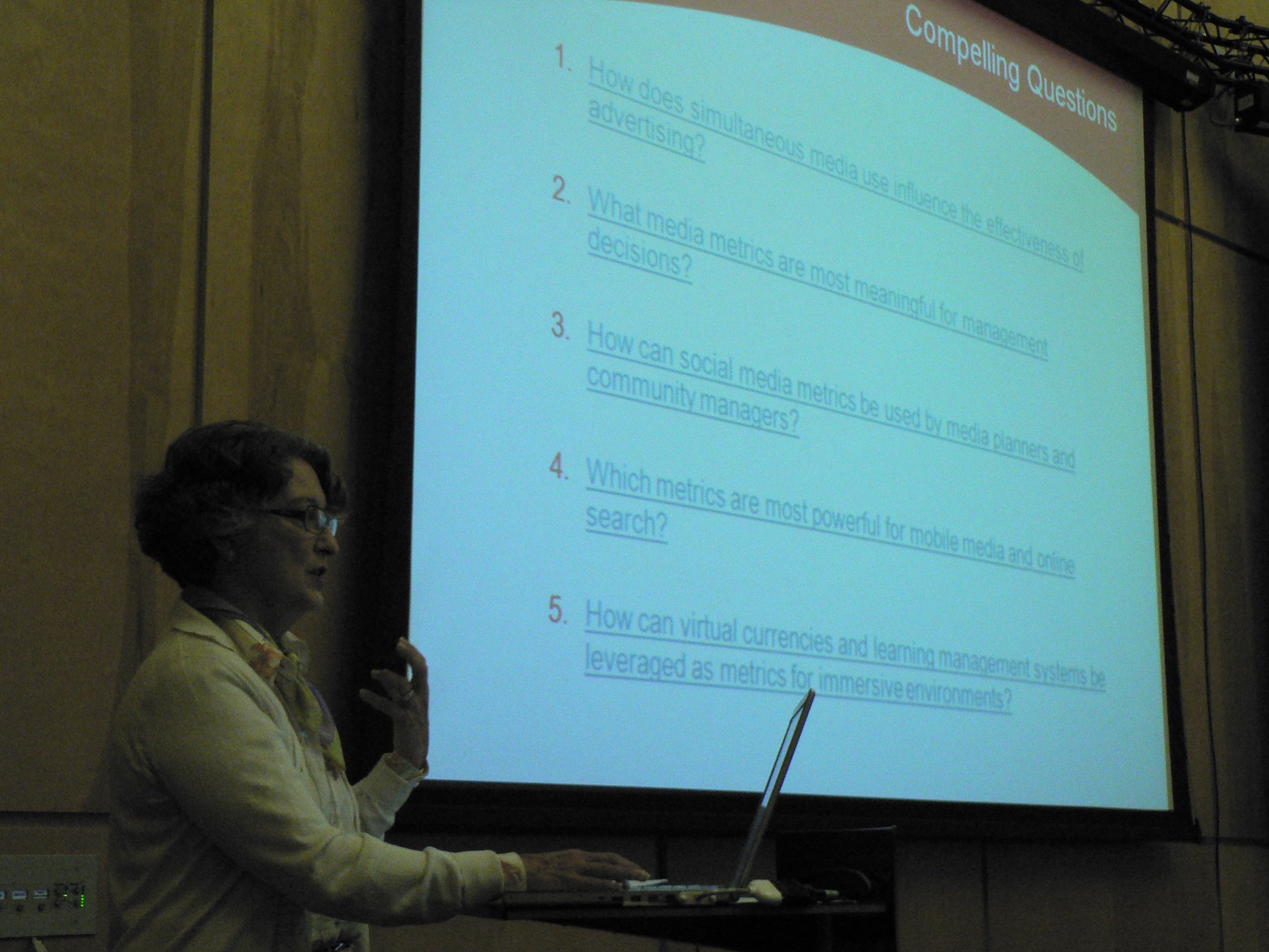 Martha spoke about the changing media landscape and the need to measure new media in the mix of media consumption measurements. She suggests that old measures may not always fit new media and that new media offer new opportunities (and challenges) for measurement. Martha runs the Media-X program at Stanford that ran the workshop.